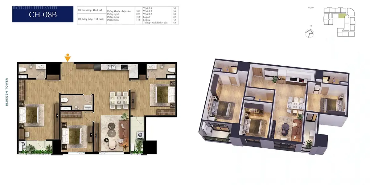 Mat bang can ho Bluegem tower CH-08B